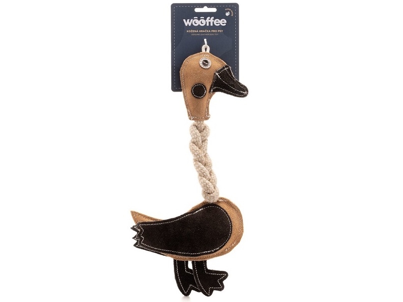 Wooffee kožená hračka Kačka s povrazom 26 cm