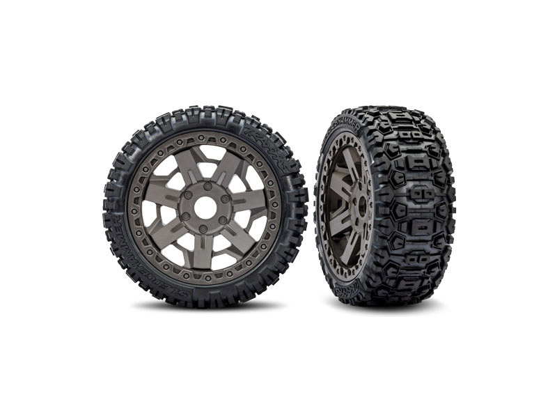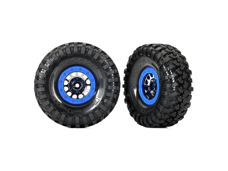 Traxxas kolo 1.9", disk Method 105 Beadlock saténový černý chrom, beadlock modrý, pneu Canyon Trail (pár)