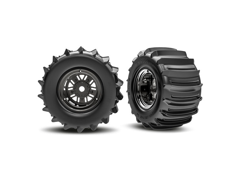 Traxxas kolo 3.6/4,7", disk Sand Car černý chrom, pneu belted paddle (zadní) (pár)