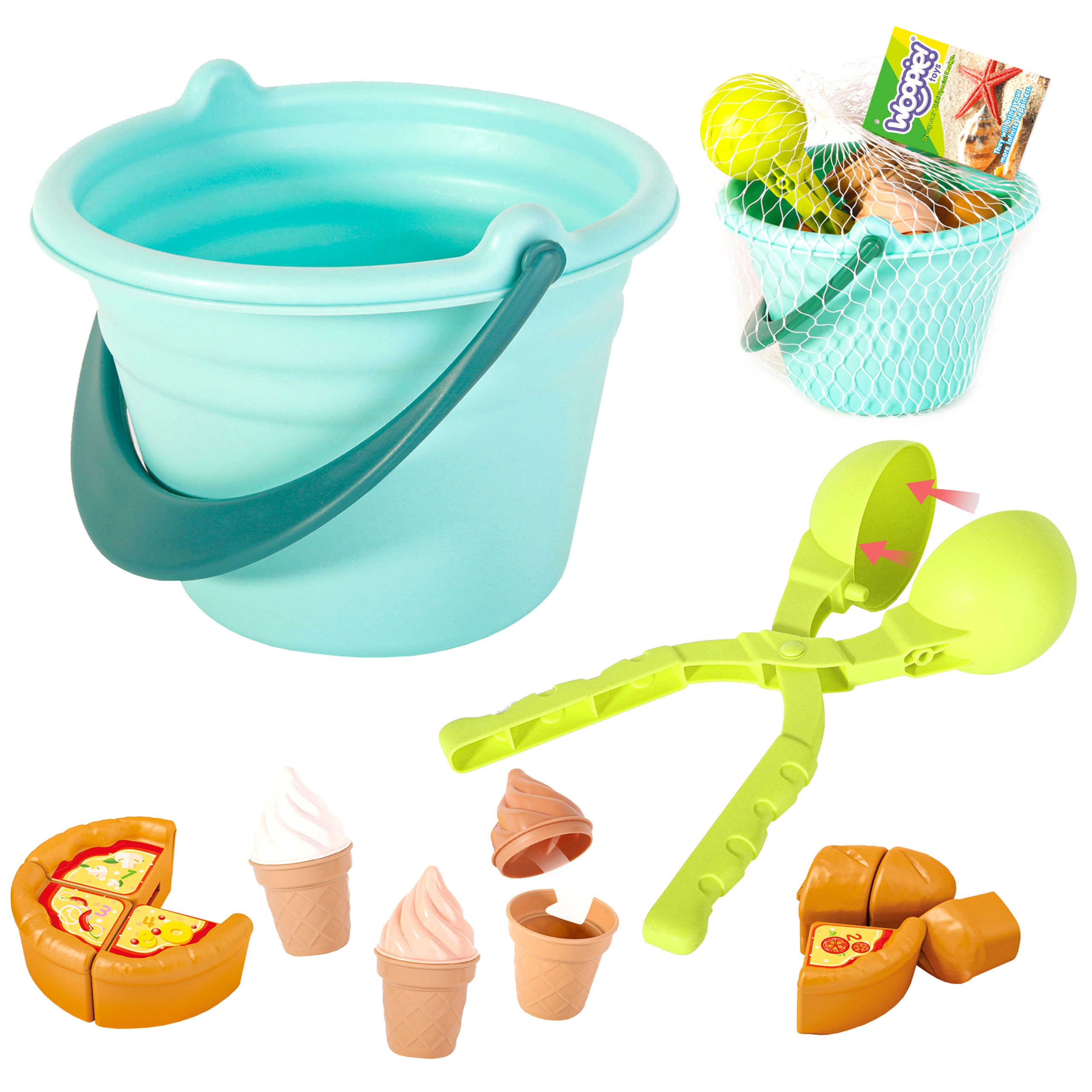 Woopie Let's Go Green WOOPIE GREEN Sada na piesok s vedierkom a autíčkom 10 ks BIOLOGICKY ROZLOŽITEĽNÝ ORGANICKÝ MATERIÁL