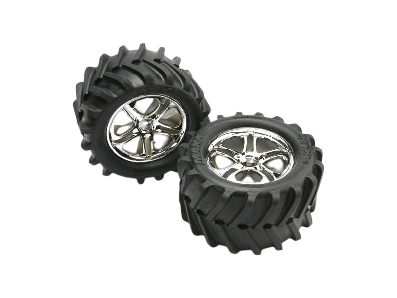Traxxas kolo 3.8", disk Split Spoke H14 stříbrný, pneu Maxx Chevron (pár)