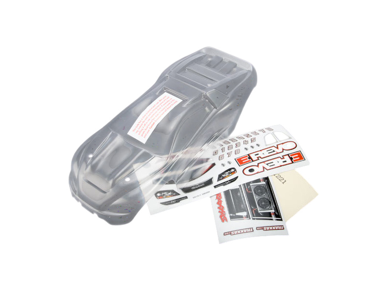 Traxxas karosérie čirá, samolepky: E-Revo 1:16