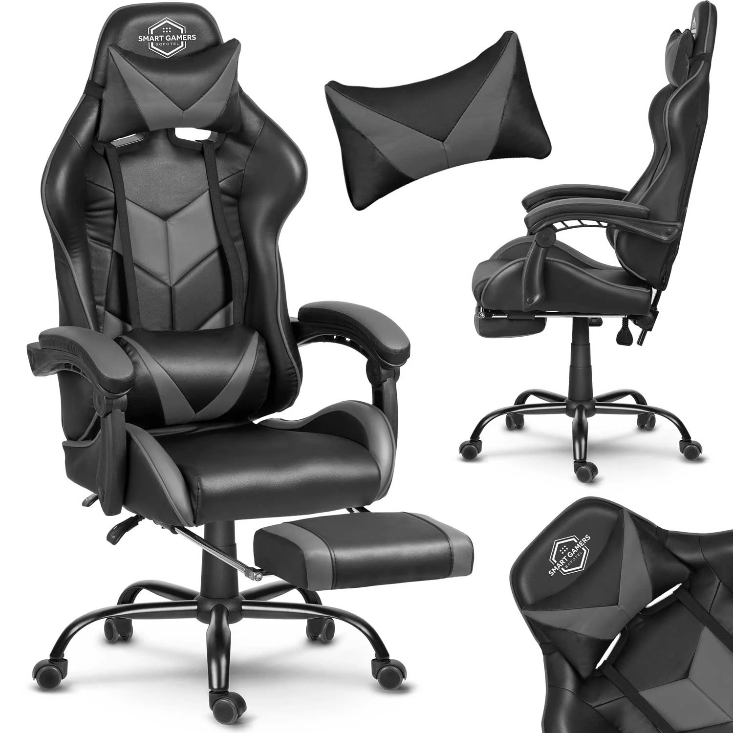 SOFOTEL Herné kreslo Cerber s opierkou na nohy - čierno-sivé