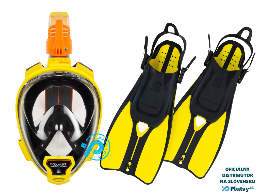 Šnorchlovací set - Explorer Maxx - celotvárová maska a plutvy Farba: žltá, Veľkosť: 36/42 + M/L