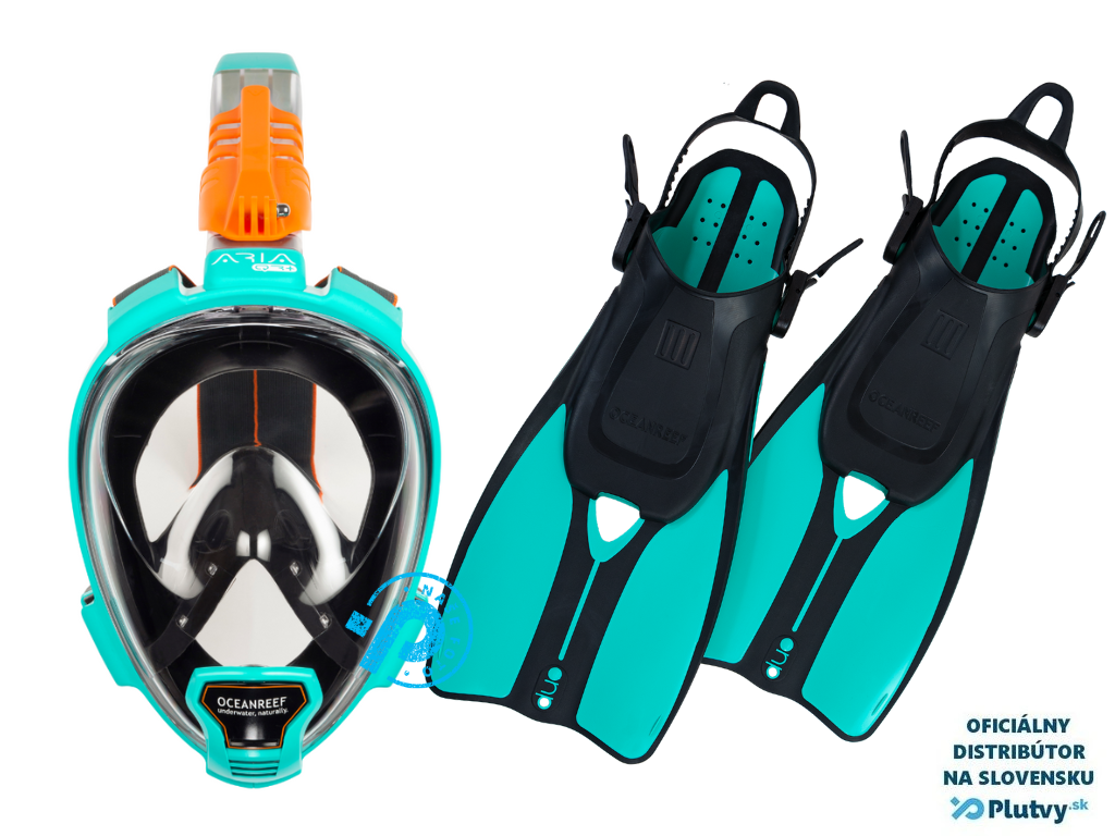 Šnorchlovací set - Explorer Maxx - celotvárová maska a plutvy Farba: tyrkysová, Veľkosť: 36/42 + S/M