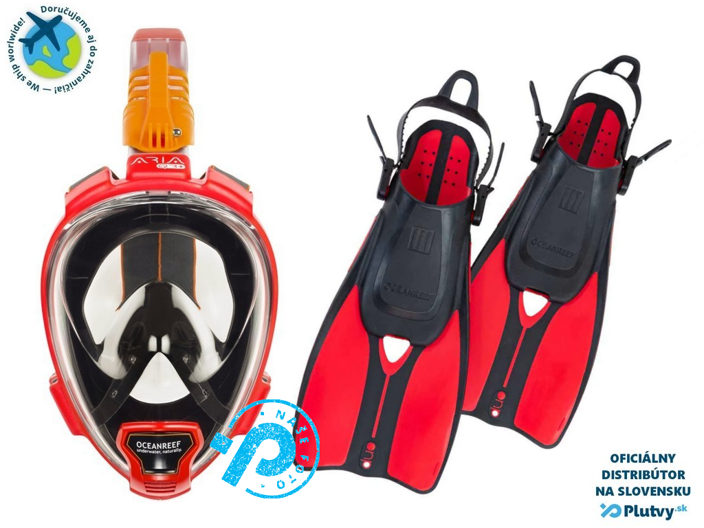 Šnorchlovací set - Explorer Maxx - celotvárová maska a plutvy Farba: červená, Veľkosť: 43/48 + M/L