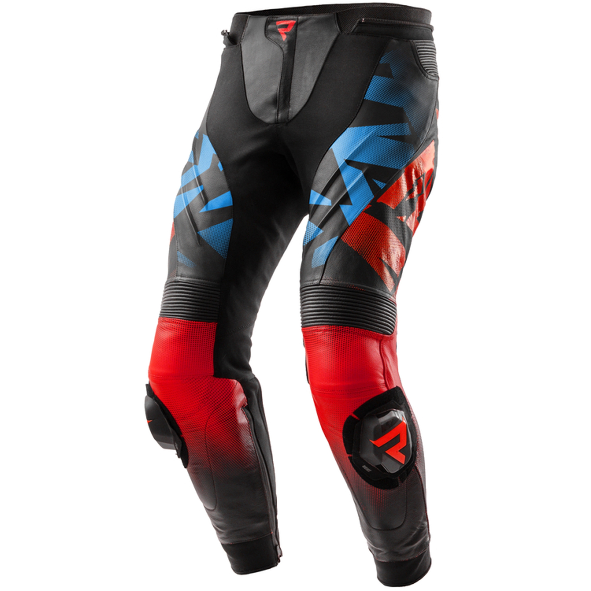 Kožené nohavice na motorku Rebelhorn Inferno čierno-modro-bielo-červené Veľkosť: 46