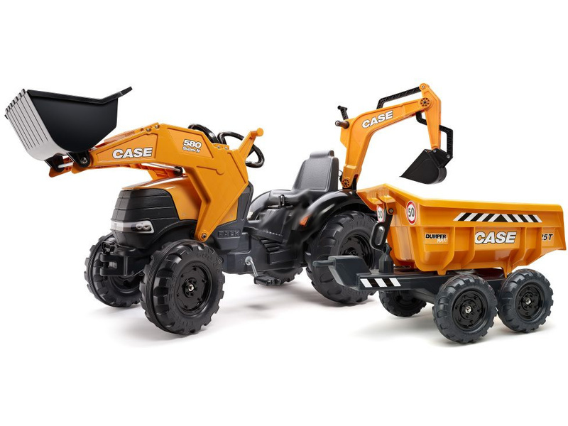 FALK - Šlapací traktor Case IH Beckhoe s nakladačem, rypadlem a vlečkou
